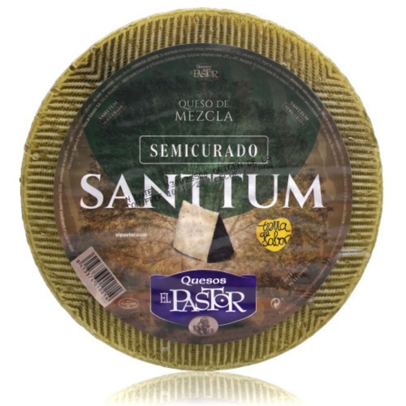 Queso El Pastor Mezcla Semicurado Pieza Este tipo de queso es un alimento muy nutritivo y recomendable. Es un queso de gran consumo, que gusta a pequeños y mayores. Queso de buena apariencia, buen olor, un gusto increíble y buen tacto, ni excesivamente tierno, ni excesivamente duro, en su punto. Queso con el cual se pueden elaborar gran cantidad de recetas de cocina. La leche de vaca es la que más se utiliza para elaborar queso en España. Las vacas producen más leche que las ovejas y las cabras y por tanto son los animales que más se utilizan para elaborar queso. A la hora de hacer un queso de mezcla, la leche de vaca aporta la cantidad suficiente, también la base del sabor y la acidez, mientras que la leche de cabra aporta el color blanco y un sabor picante o ácido. Por su parte, la leche de oveja mejora el sabor del queso, su consistencia, aroma y contenido en grasa. LECHE pasteurizada de vaca (60% min.), LECHE pasteurizada de oveja (17% min.), LECHE pasteurizada de cabra (12% min.), sal, secuestrante: Cloruro cálcico, cuajo, FERMENTOS LÁCTICOS, Corteza: Conservador E-235, conservador E-202 y colorante E-172